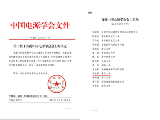Recently, after the review and nomination of the first China Power Supply Society Member nomination selection Committee, the chairman meeting of China Power Supply Society review, the Standing Council approved, 14 comrades were awarded the first batch of China Power Supply Society member title in2022. Professor Zhou Luo Wei of our Institute was successfully selected.In order to encourage the me...