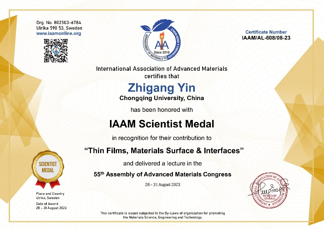 近期,由国际先进材料协会(International Association of Advanced Materials, IAAM)主办的第55届国际先进材料大会(Assembly of Advanced Materials Congress)在瑞典首都斯德哥尔摩以线下和线上结合形式举办。我院尹志刚教授荣获该协会授予的2023年度IAAM科学家奖章(IAAM Scientist Medal),以表彰其在薄膜、材料表面和界面领域的突出贡献。国际先进材料协会(IAAM)是全球先进材料领域研究人员组成的知名国际学术组...