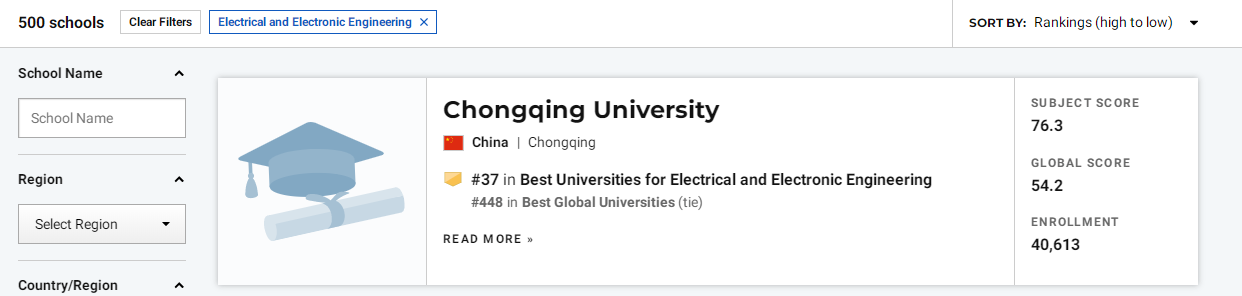 近日,U.S.News&World Report《美国新闻与世界报道》发布2022最佳全球院校排名,从综合排名、国家和地域、学科排名等不同维度,对全球的高校进行评价。重庆大学电气与电子工程学科位居世界37名,排名大幅上升,创历史新高。为电气工程学科“双一流”建设提供有力支撑。US News世界大学排名、上海软科ARWU世界大学学术排名、泰晤士高等教育世界大学排名、QS世界大学排名为公认的四大较为权威的世界大学排名。USNews世界大学排...