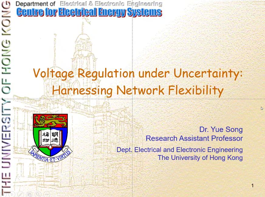 2022年11月11日上午,香港大学助理教授宋越做客成渝地区双城经济圈智慧能源大讲坛第十三期暨智慧能源云讲堂第二十九期,以“Voltage Regulation under Uncertainty: Harnessing Network Flexibility”为主题开讲。本期讲坛由重庆大学、输配电装备及系统安全与新技术国家重点实验室和重庆大学溧阳智慧城市研究院主办,由成都地区的四川大学、电子科技大学、西南交通大学、成都理工大学、成都中医药大学、四川师范大学、西华大学...