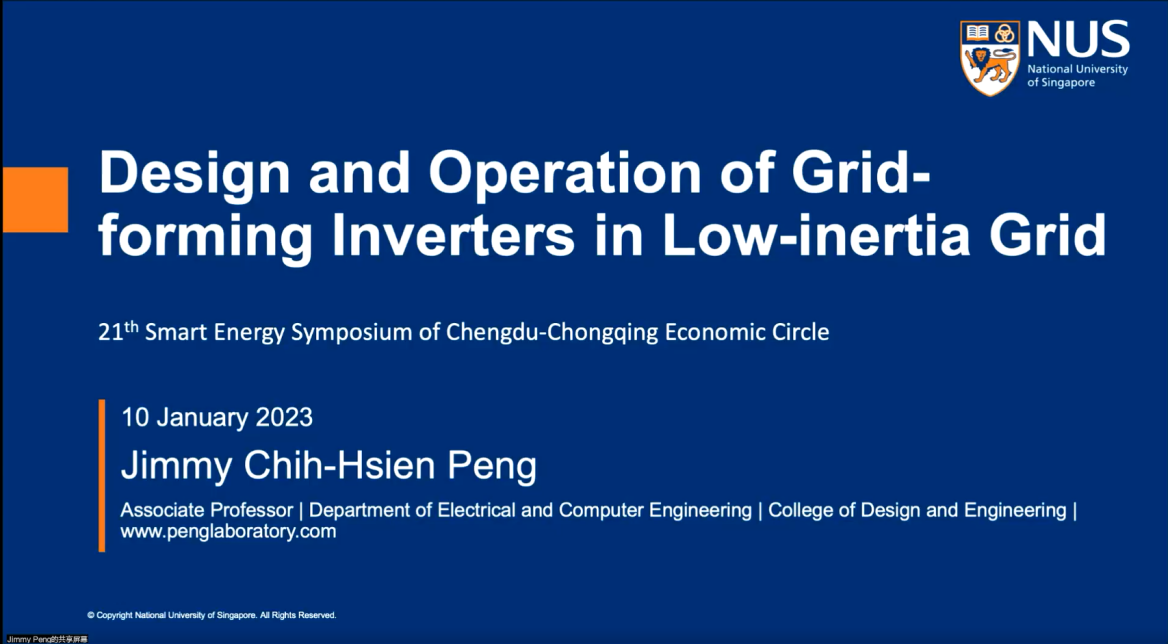 2023年1月10日下午,新加坡国立大学Jimmy Chih-Hsien Peng副教授做客成渝地区双城经济圈智慧能源大讲坛第二十一期暨智慧能源云讲堂第三十七期,以“Design and Operation of Grid-forming Inverters in Low-inertia Grids”为主题为大家带来精彩分享。本期讲坛由重庆大学、输配电装备及系统安全与新技术国家重点实验室和重庆大学溧阳智慧城市研究院主办,由成都地区的四川大学、电子科技大学、西南交通大学、成都理工大学、成都...