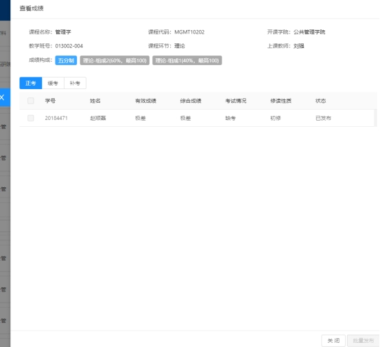 选/退课记录:管理员查看的课程成绩的录入详情。
