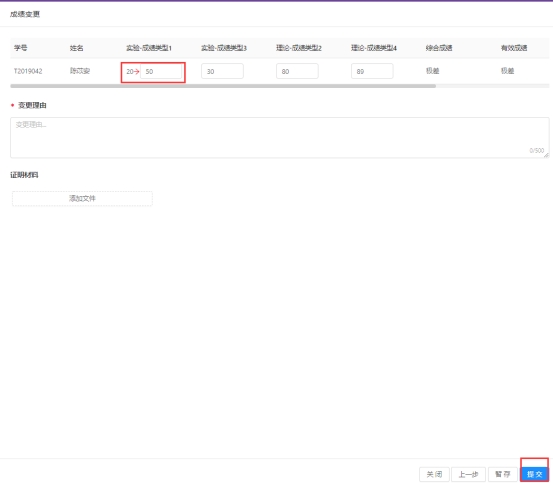 成绩变更:管理员对已提交学生成绩的学生考试成绩进行变更。