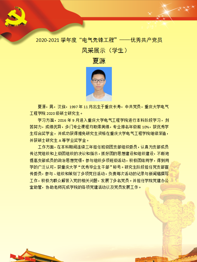 【党员风采】高电压与绝缘技术硕士生一支部夏源