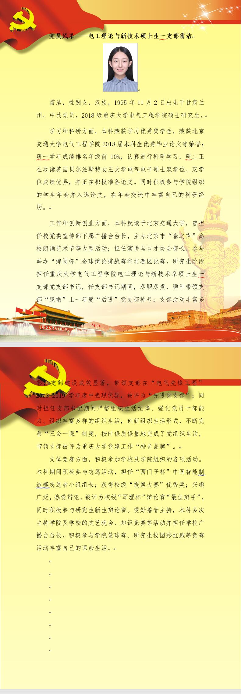 【党员风采】电工理论与新技术硕士生一支部雷洁