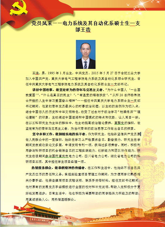【党员风采】电力系统及其自动化系硕士生一支部王浩