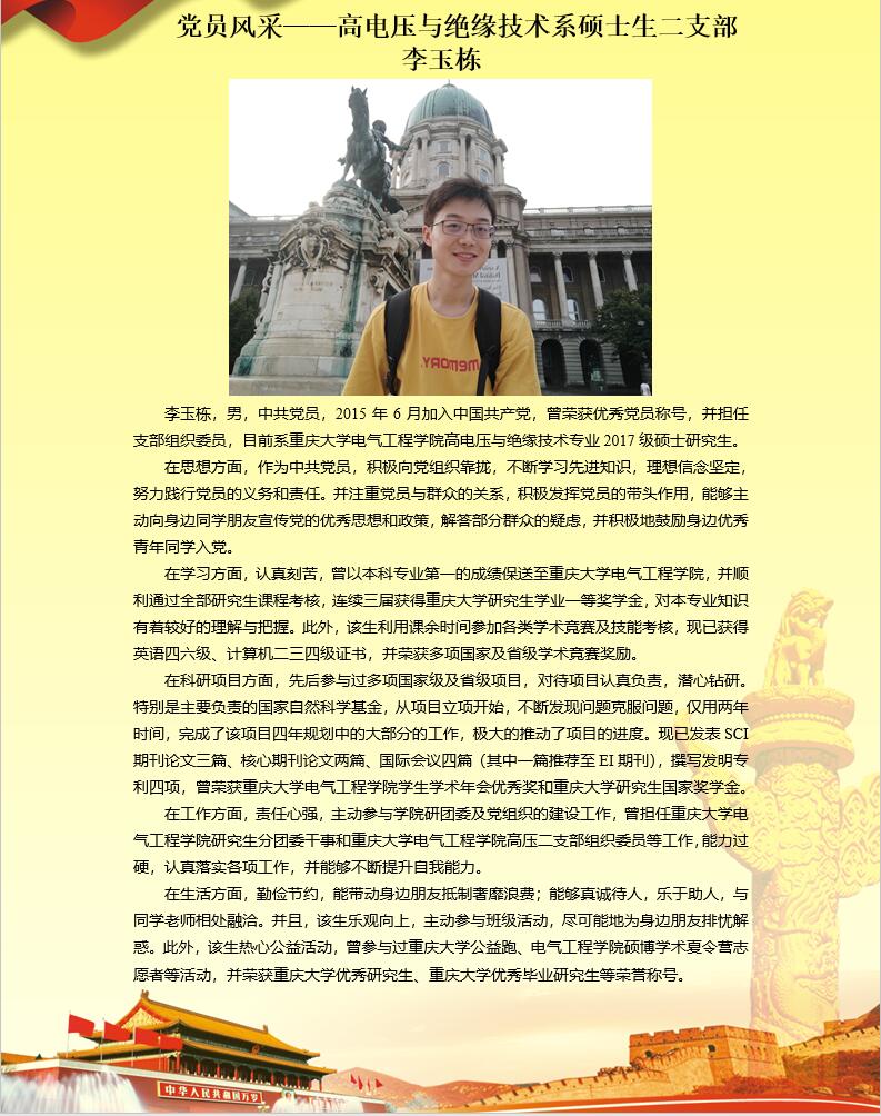 【党员风采】高电压及其绝缘技术系李玉栋