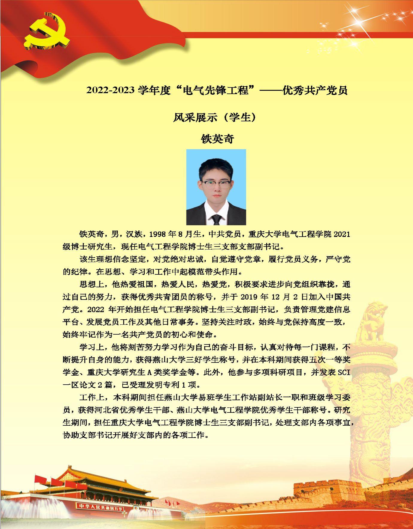 【党员风采】博士生三支部铁英奇
