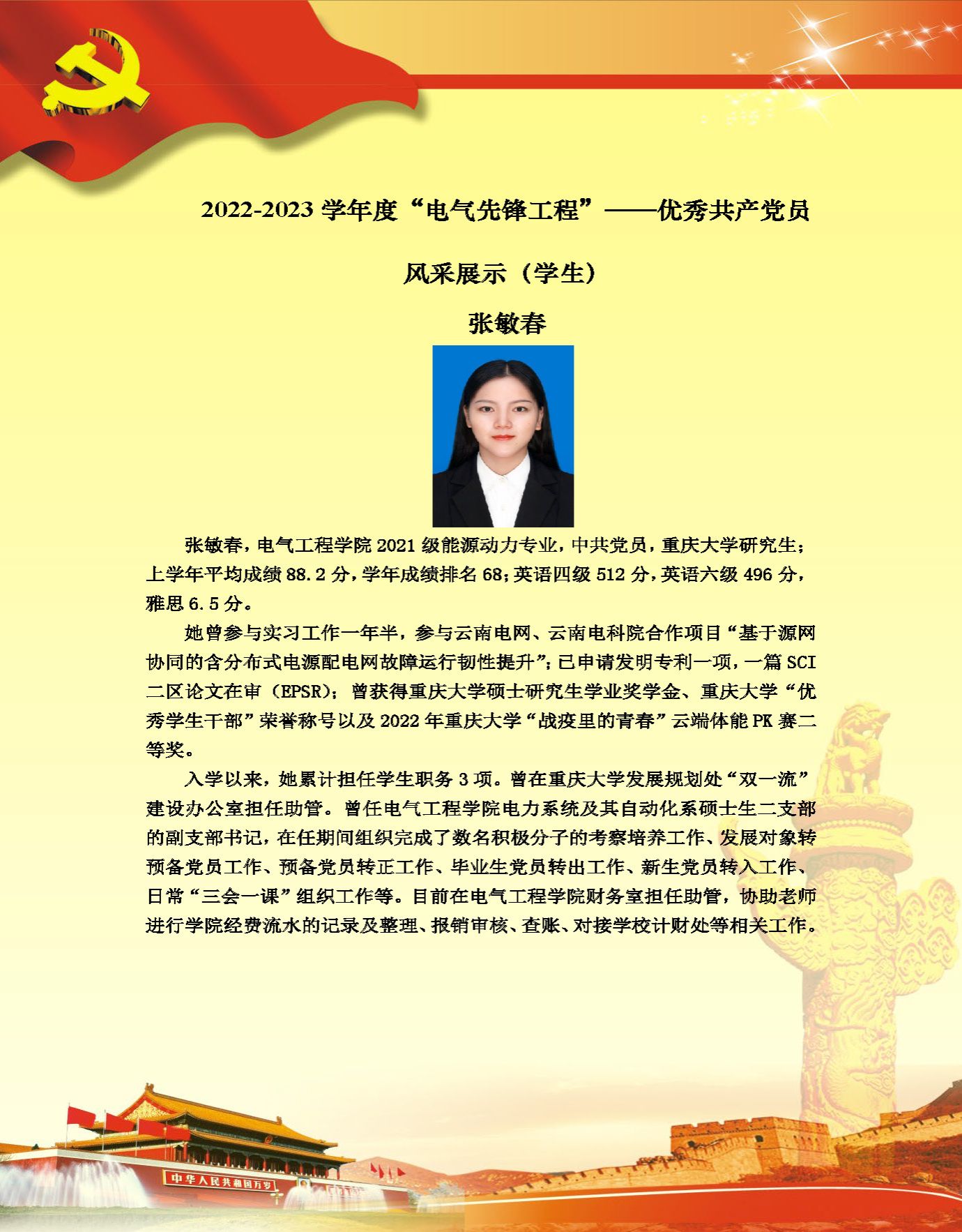 【党员风采】电力系统及其自动化系硕士生二支部张敏春