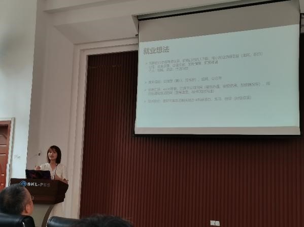 毕业生党员代表王韵从求职前的思考,到求职期间的时间安排、综合考察、简历制作、面试后总结等方面分享了自己的求职经历。她鼓励大家要尽早明确自己的就业方向,结合自己对于地域、薪资、工作强度等方面的就业想法,精准定位求职方向。同时,她建议大家在读研期间也要不断充实自己,做到未雨绸缪。