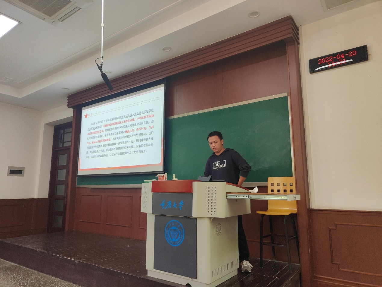 本科生一支部在重庆大学A5105开展了以“奋斗献礼二十大,强国有我新征程”为主题的党日活动。本次活动由胡家勤同志主持,一支部全体党员参会。