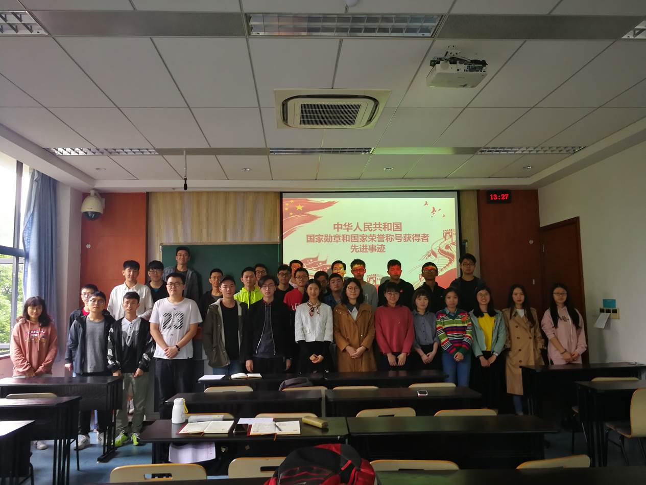 本科一、四支部在A8303教室举办了主题为“中华人民共和国国家勋章和国家荣誉称号获得者先进事迹”主题党日活动,本次主题党日活动分为国家勋章及国家荣誉称号介绍、国家勋章和国家荣誉称号颁授仪式以及国家勋章获得者先进事迹介绍三个部分,由陈丹和尚瑞琦同志主持。
