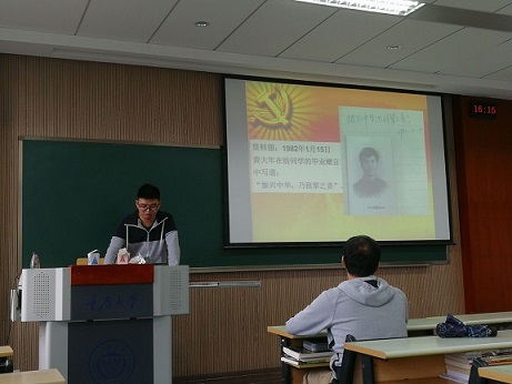 首先,向竑宇同志向各位支部成员简要介绍了黄大年主要生平事迹,带领大家学习了习近平总书记关于学习黄大年同志先进事迹的重要批示。他号召第一支部全体党员以黄大年同志为榜样,学习黄大年同志心有大我、至诚报国的赤子情怀,学习他敢为人先、孜孜以求的创新精神,学习他淡泊名利、甘于奉献的高尚情操,把爱国之情、报国之志融入祖国改革发展的伟大事业之中、融入人民创造历史的伟大奋斗之中,从自己做起,从本职岗位做起,为实现“两个一百年”奋斗目标、实现中华民族伟大复兴的中国梦贡献智慧和力量。