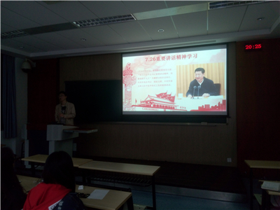 会议开始,支部书记李孟杰带领同志们学习了习近平总书记726重要讲话精神。习总书记的讲话深刻回答了我们党在新的历史条件下举什么旗、走什么路、以什么样的精神状态、担负什么样的历史使命、实现什么样的奋斗目标等重大问题,是我们党在新的历史起点上不忘初心、继续前进的行动纲领,充分体现了我们党准确把握时代大势、毫不动摇坚持和发展中国特色社会主义的坚定信念和强大定力。