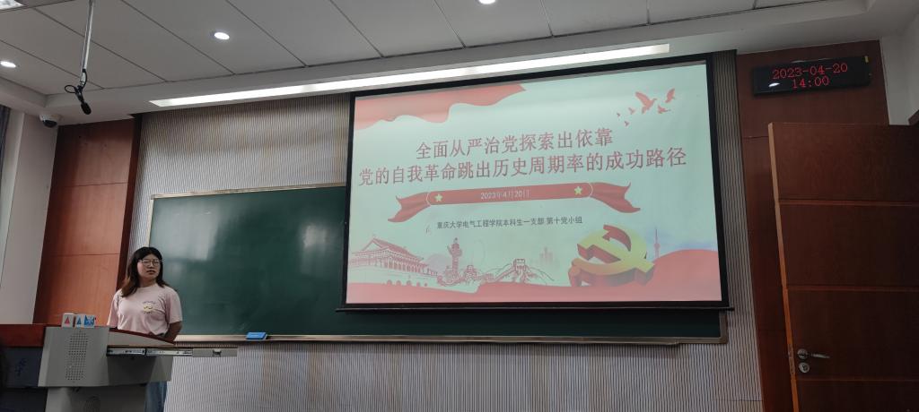 2023420日,本科一支部在八教A8309开展主题党日活动,本次党日活动的主要内容为:全面从严治党,探索出依靠党的自我革命跳出历史周期律的成功路径。主题党日由林子潇同志主持,一支部全体党员参加。