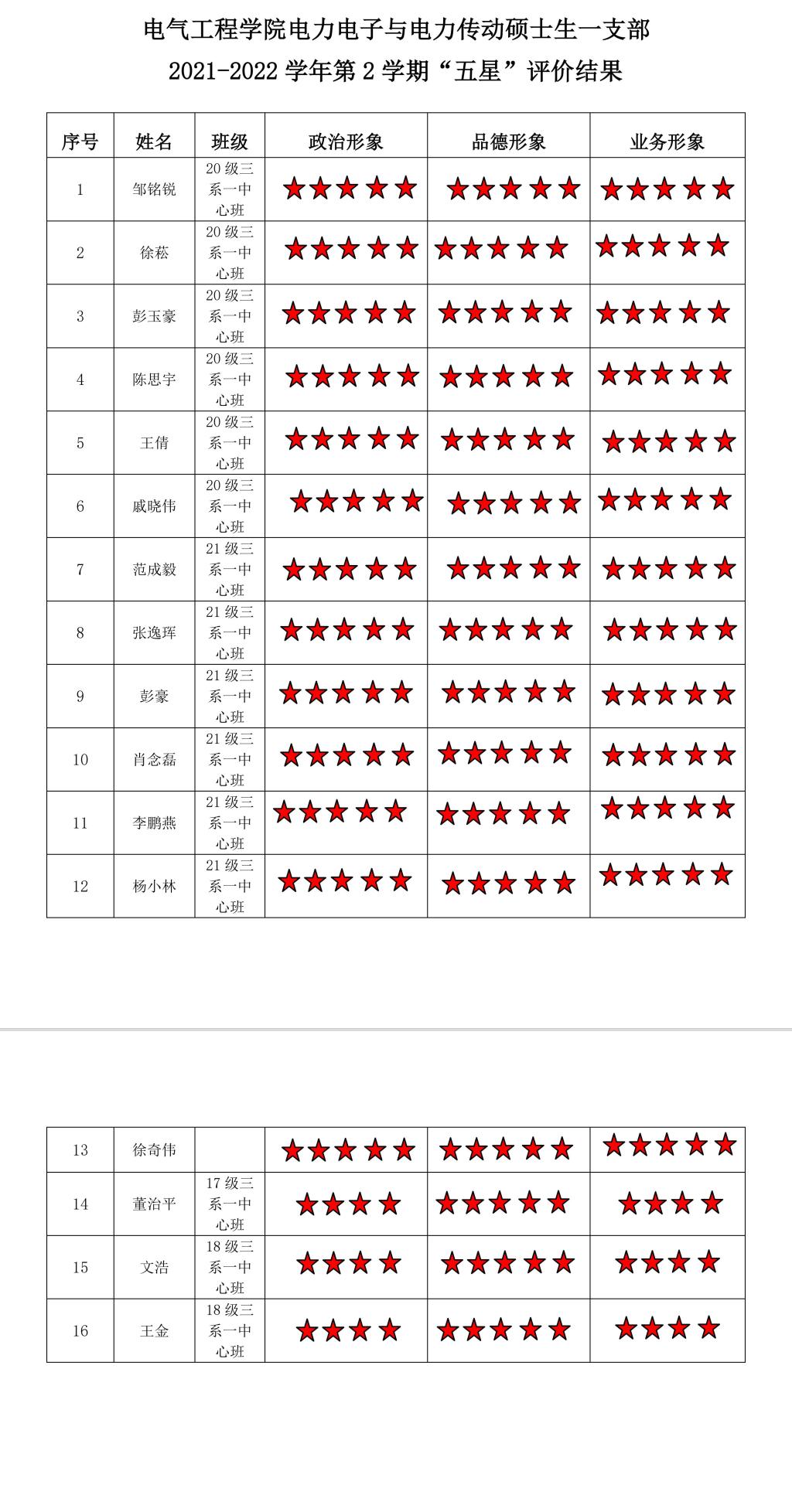 百家乐规则 电力电子二支部2021-2022学年第二学期“五星评价结果”