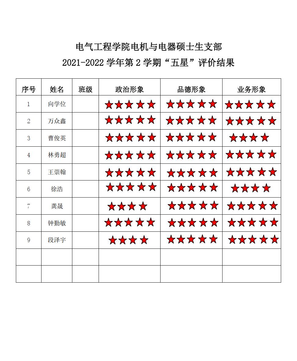 百家乐规则 电机支部2021-2022学年第二学期“五星评价结果”