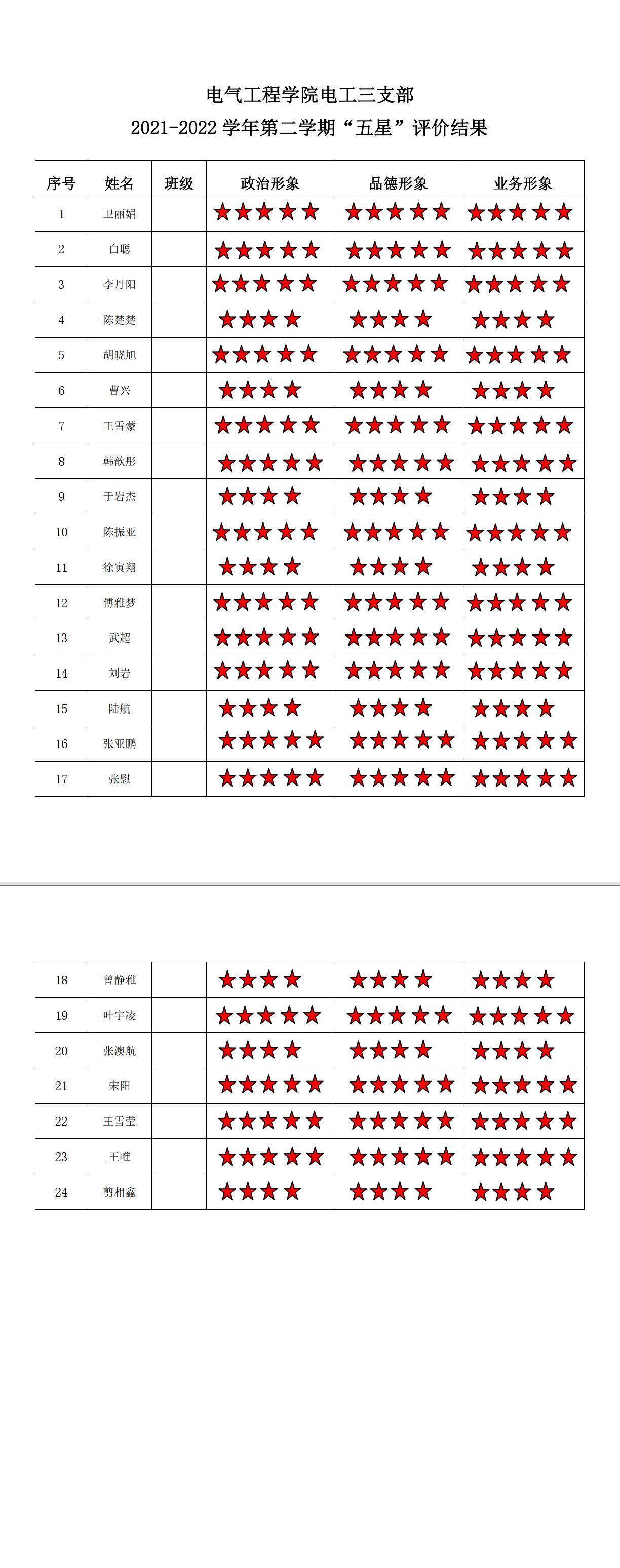 百家乐规则 电工二支部2021-2022学年第二学期“五星评价结果”