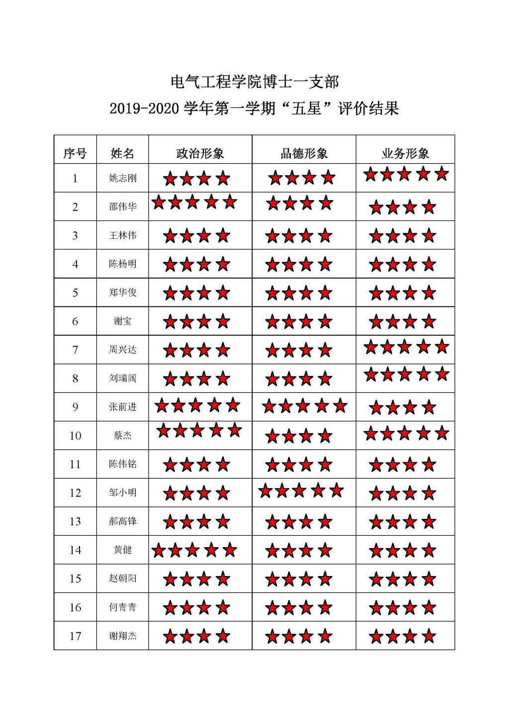 百家乐规则 电力系统及其自动化系硕士第一支部 2019-2020学年第1学期“五星”评价结果