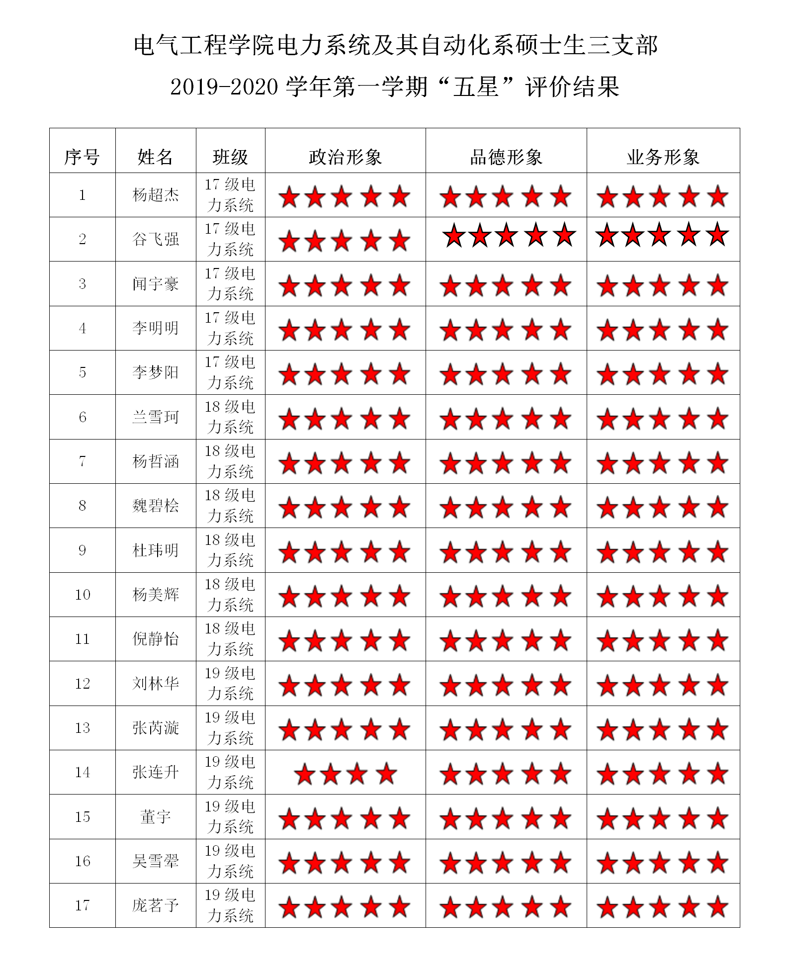 百家乐规则 电力系统及其自动化系硕士第三支部 2019-2020学年第1学期“五星”评价结果