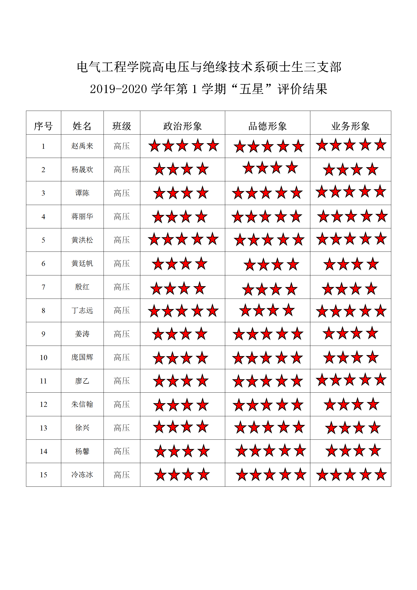 百家乐规则 高电压与绝缘技术系硕士第二支部 2019-2020学年第1学期“五星”评价结果