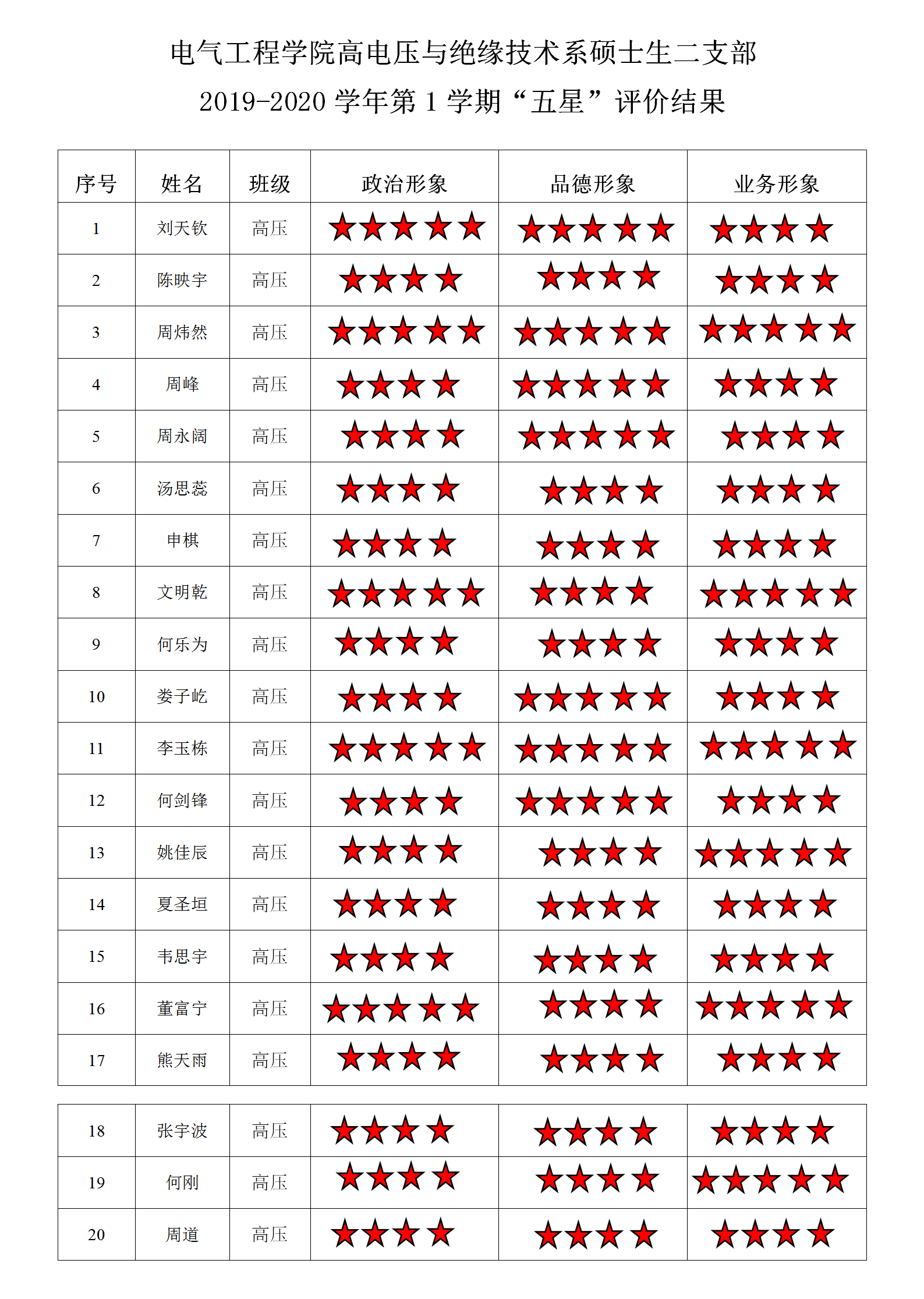 百家乐规则 高电压与绝缘技术系硕士第二支部 2019-2020学年第1学期“五星”评价结果