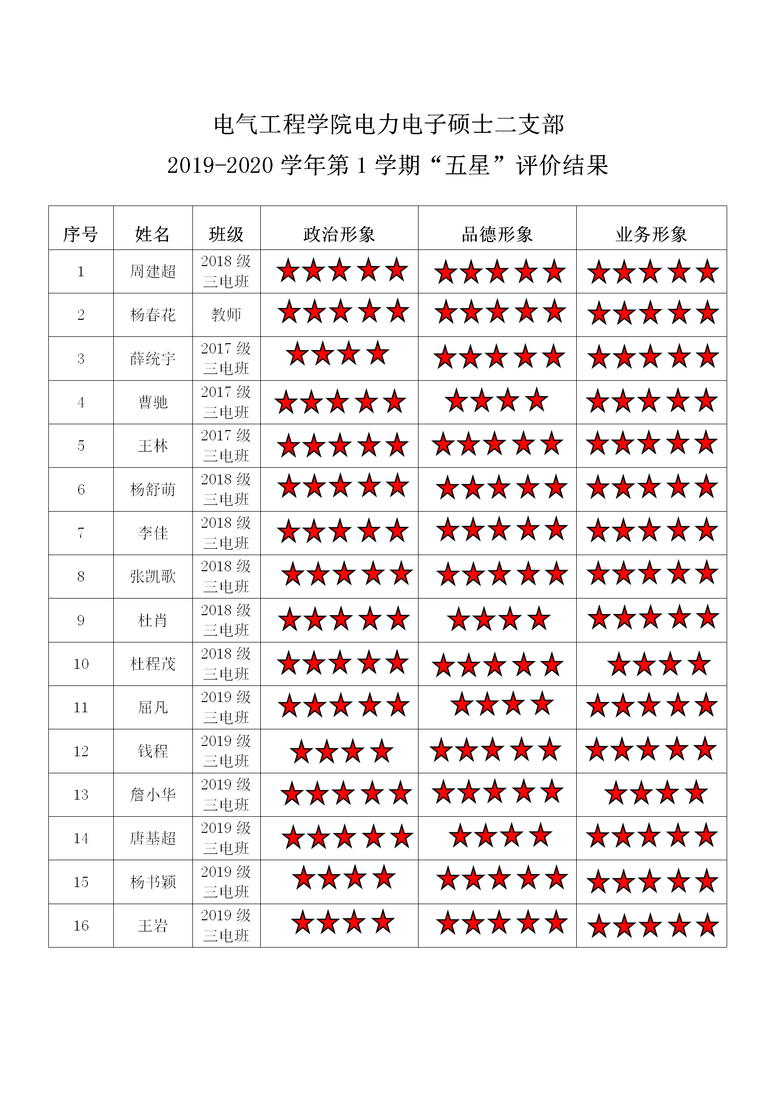 百家乐规则 电力电子系硕士第一支部 2019-2020学年第1学期“五星”评价结果