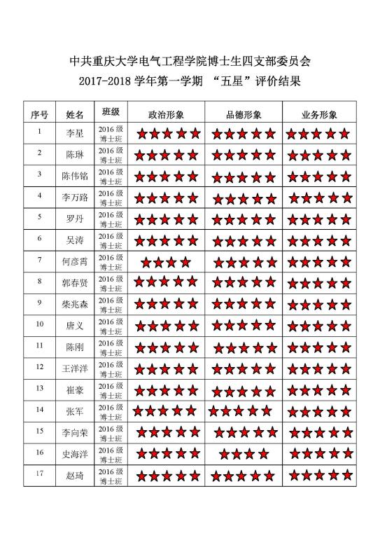 中共百家乐规则-百家乐补牌规则 博士生三支部委员会 2017-2018学年第一学期 “五星”评价结果