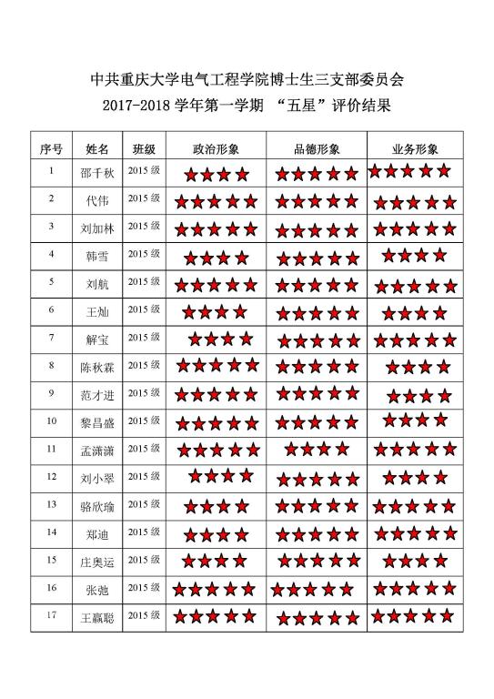 中共百家乐规则-百家乐补牌规则 博士生三支部委员会 2017-2018学年第一学期 “五星”评价结果