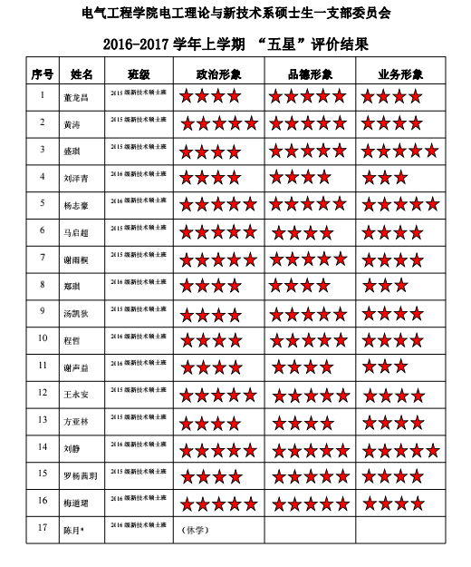 中共百家乐规则-百家乐补牌规则 电工理论与新技术系硕士生二支部委员会2017-2018学年 “五星”评价结果