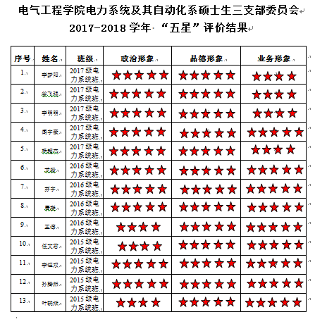 中共百家乐规则-百家乐补牌规则 电力系统及其自动化系硕士生三支部委员会2017-2018学年 “五星”评价结果