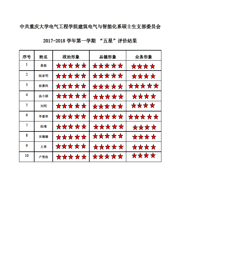 中共百家乐规则-百家乐补牌规则 建筑电气与智能化系硕士生支部委员会2017-2018学年第一学期 “五星”评价结果
