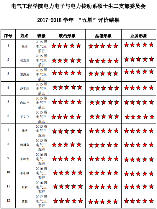 中共百家乐规则-百家乐补牌规则 电力电子与电气传动硕士生一支部委员会2017-2018学年 “五星”评价结果