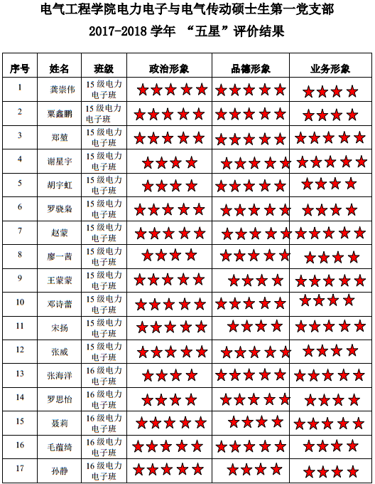 中共百家乐规则-百家乐补牌规则 电力电子与电气传动硕士生一支部委员会2017-2018学年 “五星”评价结果