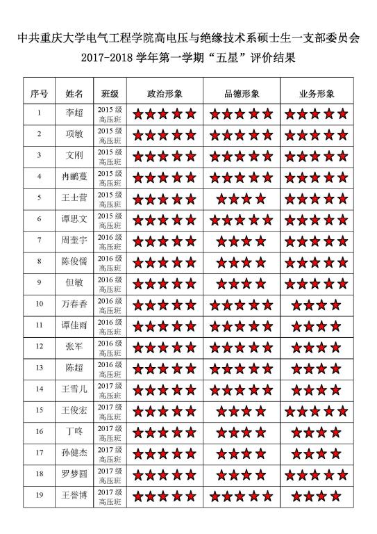 中共百家乐规则-百家乐补牌规则 高电压与绝缘技术系硕士生四支部委员会 2017-2018学年第一学期“五星”评价结果