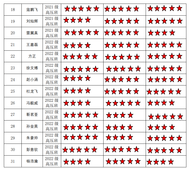 百家乐规则 高电压与绝缘技术硕士生四支部 2022-2023学年第二学期“五星”评价结果