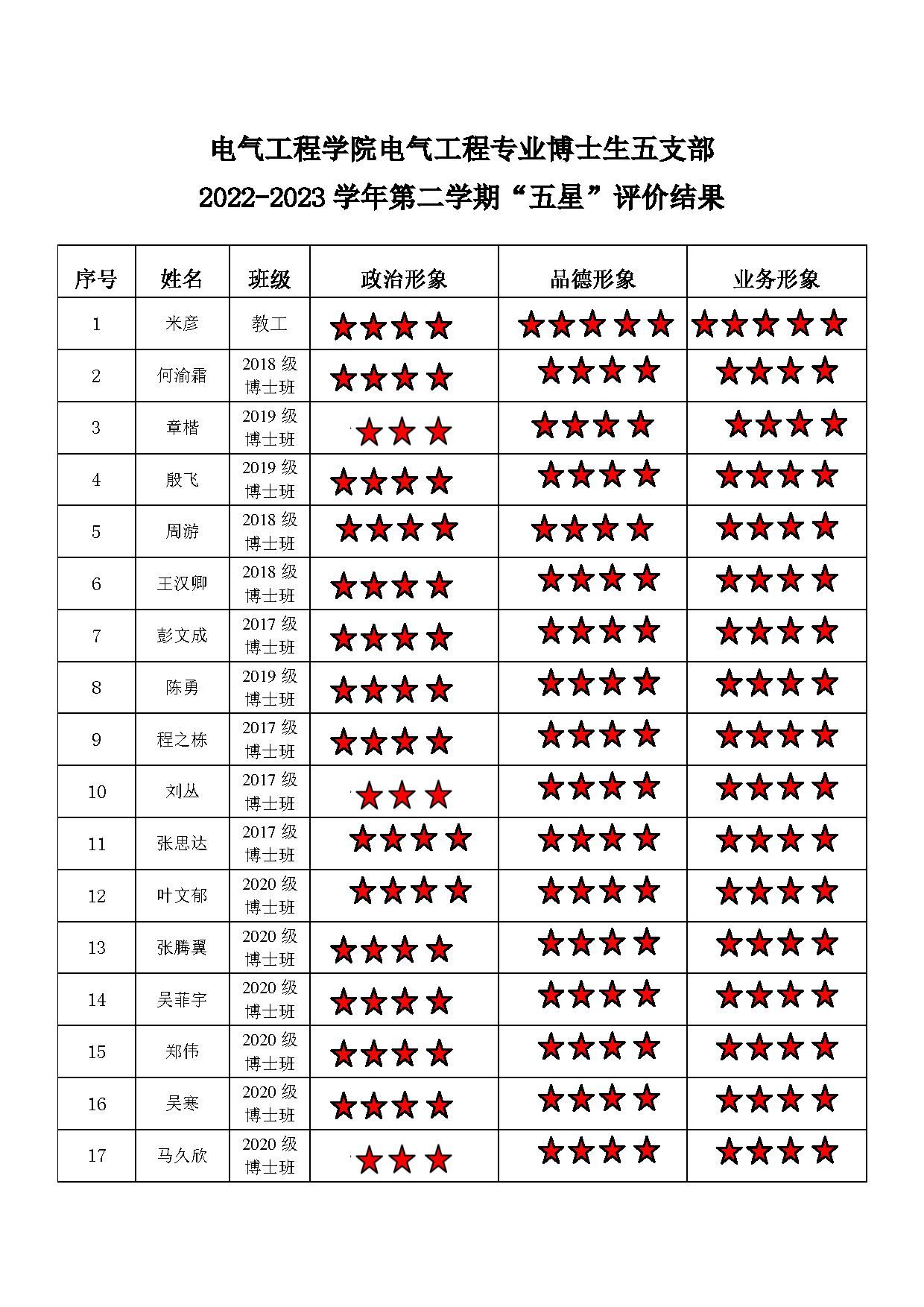 百家乐规则 电工一支部 2022-2023学年第二学期“五星”评价结果