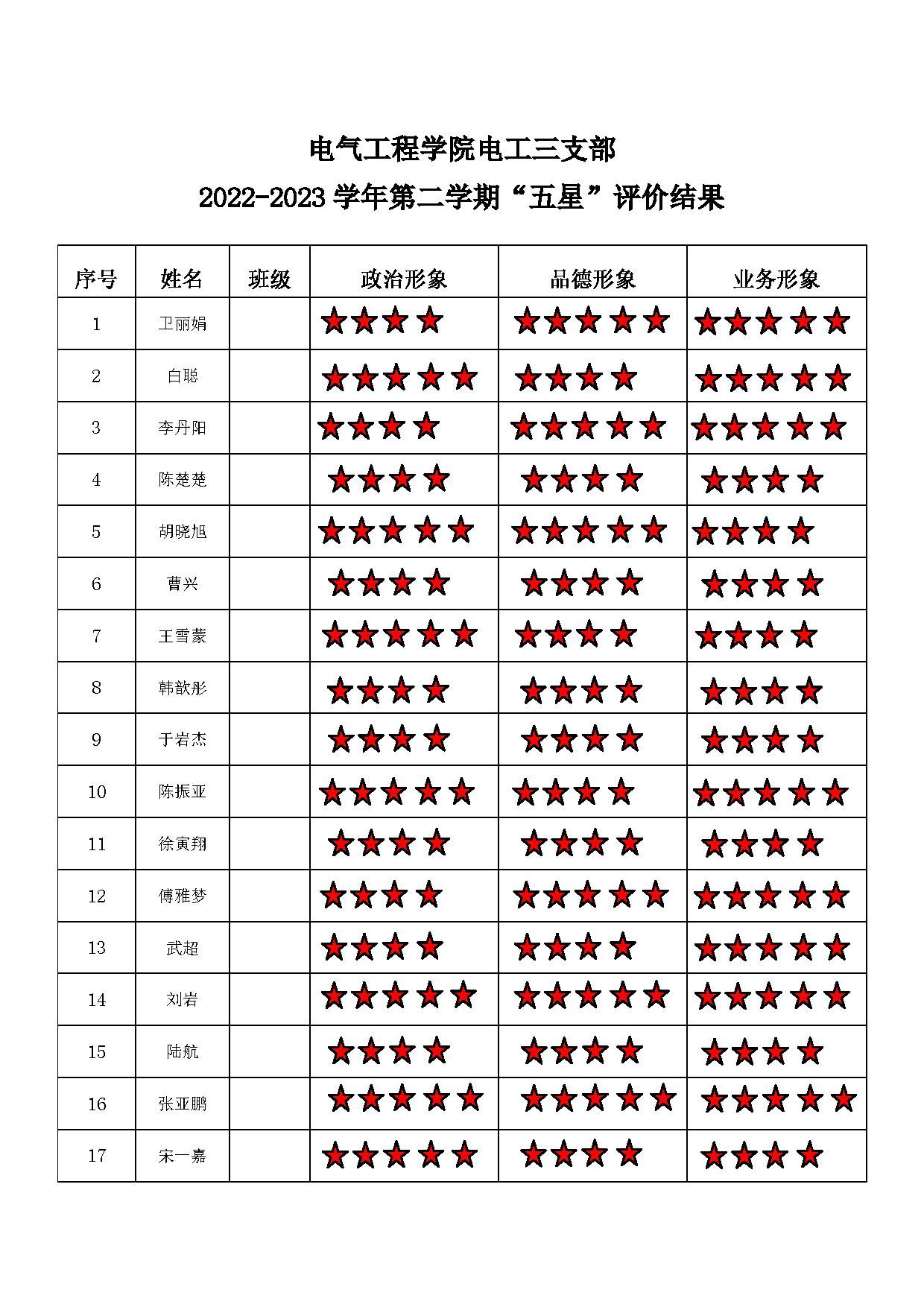 百家乐规则 电工二支部 2022-2023学年第二学期“五星”评价结果