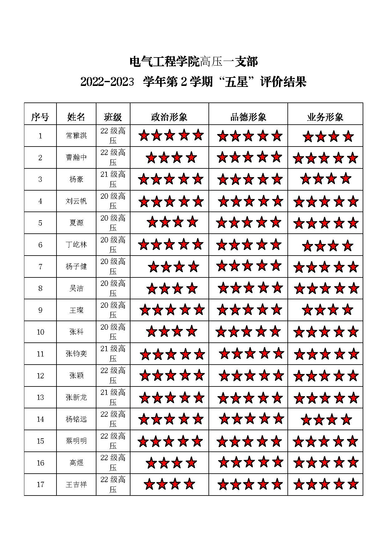 百家乐规则 高压一支部 2022-2023学年第二学期“五星”评价结果