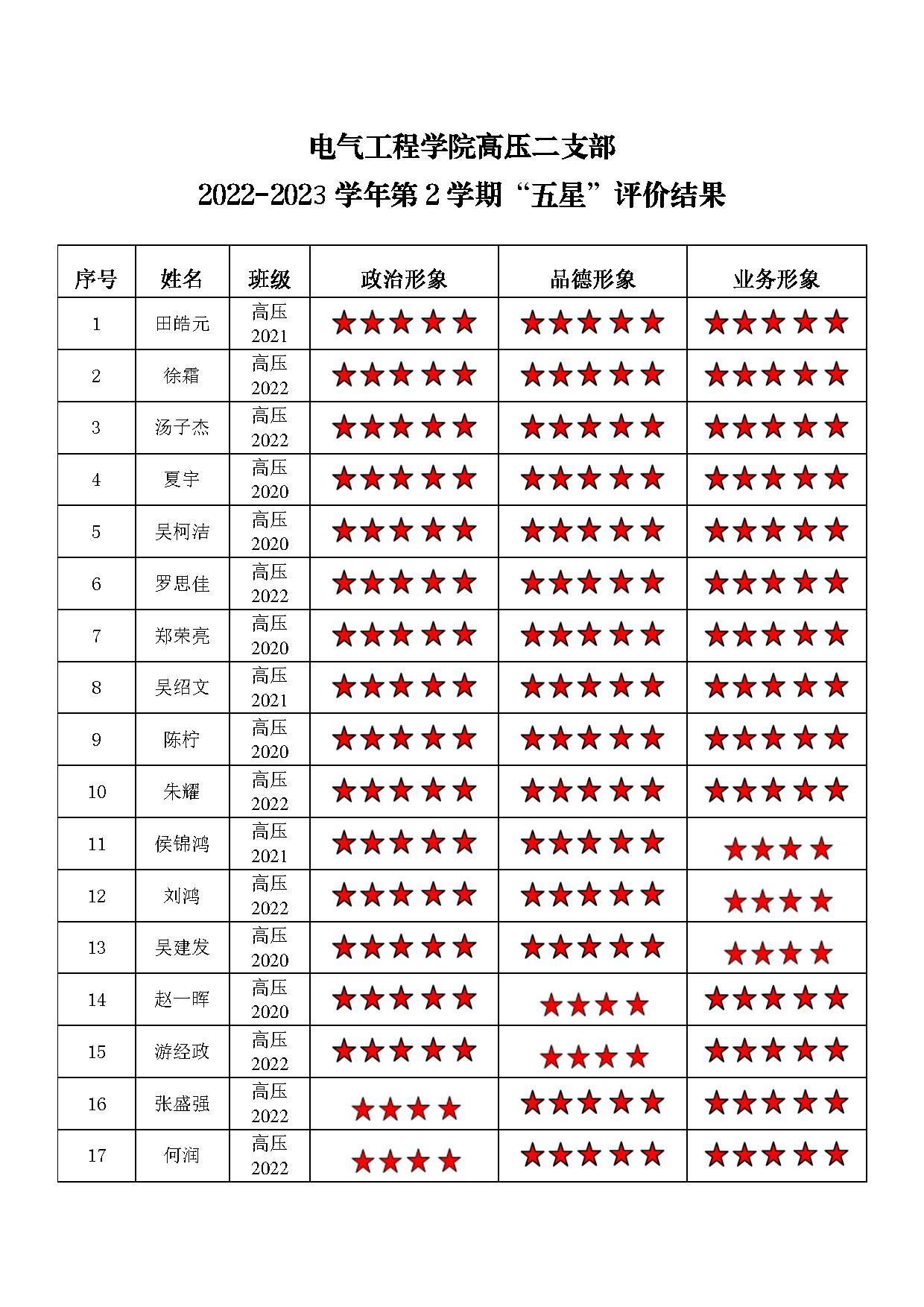 百家乐规则 高压二支部 2022-2023学年第二学期“五星”评价结果