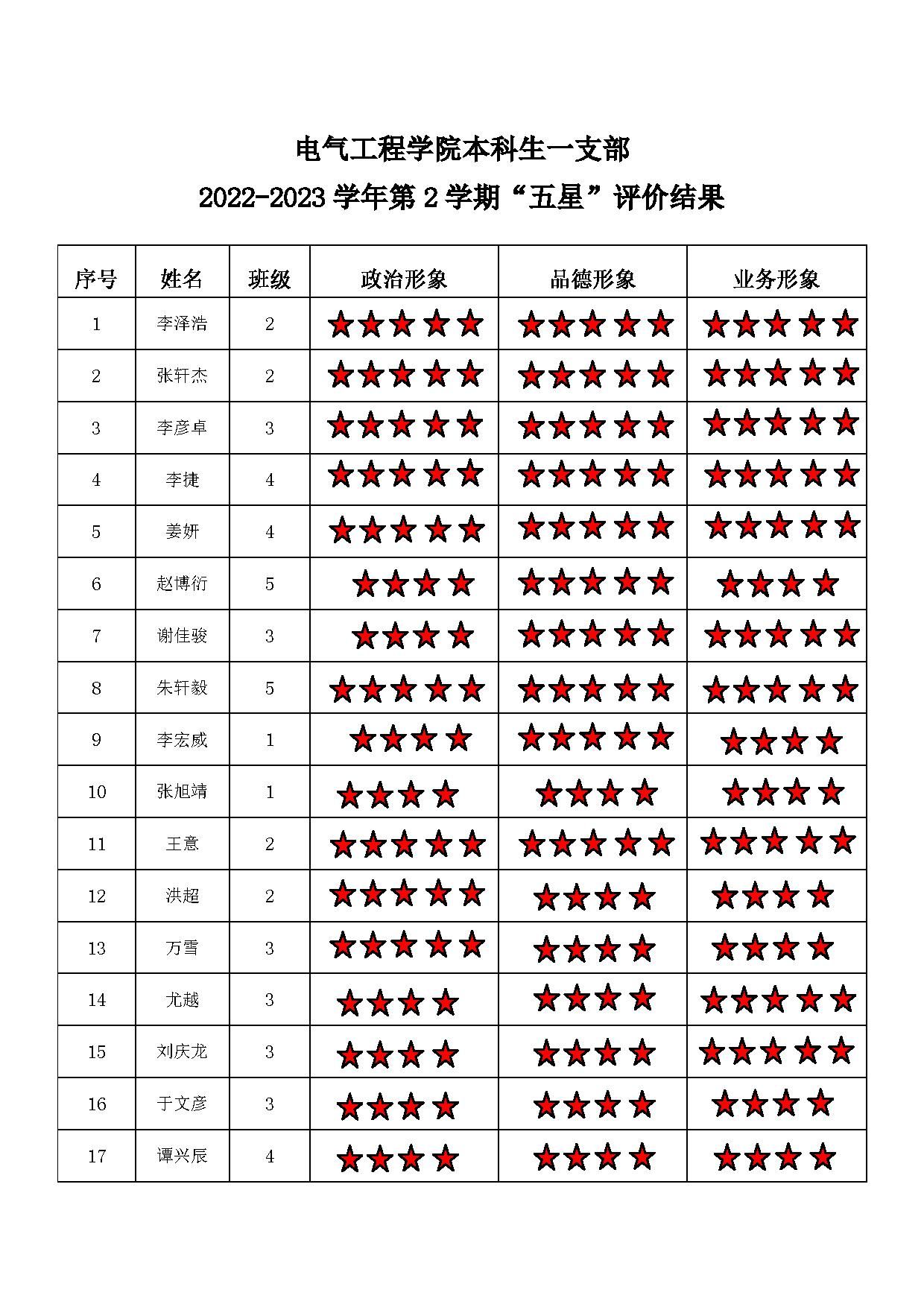 百家乐规则 本科生二支部 2022-2023学年第二学期“五星”评价结果