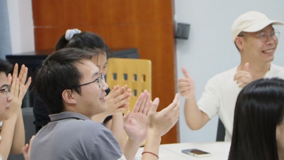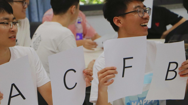 基础知识回答过程中,每一个小组都齐心协力,最终讨论得出一个答案并举牌示意。