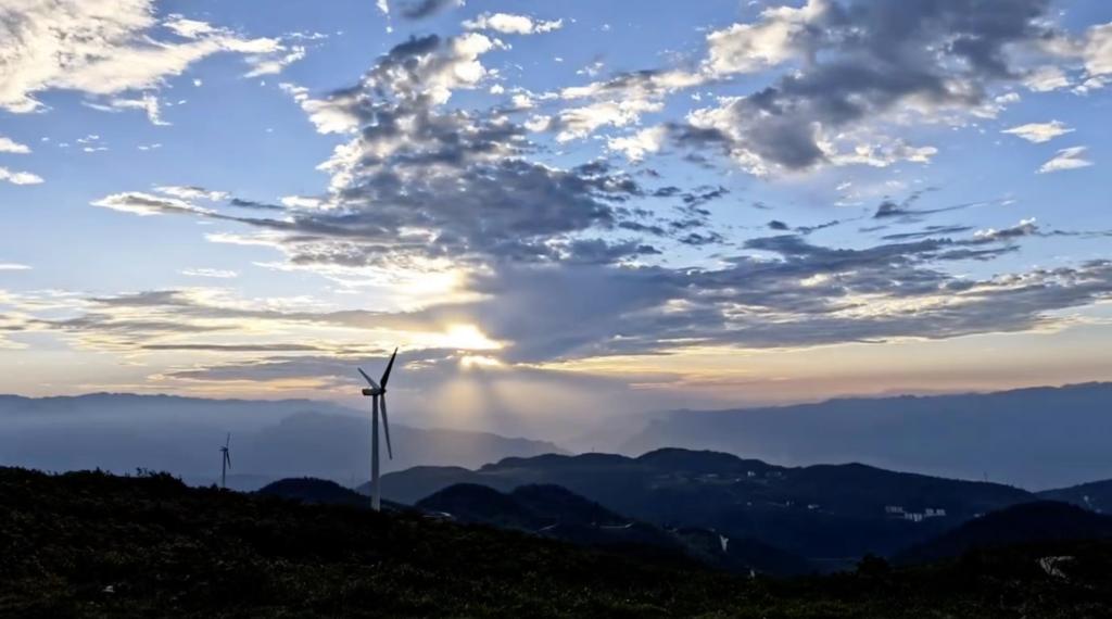 近年来,国家陆续颁布支持风电行业发展的政策,《可再生能源发展“十二五”规划》、《风电发展“十二五”规划》、《关于完善风力发电上网电价政策的通知》,充分体现了国家对风电行业的支持。风电被认为是我国最有可能最先实现商业化运营的清洁能源之一,极具发展前景。武隆区顺应国家政策,坚持绿色发展,高质量开发风力和水力等生态能源。据统计,仅2021年的1-4月,武隆区水力发电产值共计约1.25亿元,风力发电产值共计828万元。承担着风力发电主要任务的是位于重庆武隆和顺镇弹子山之巅的“四眼坪”风电场。该风电场立足于弹子石山顶,放眼望去,58台风机依次排开,旋转的长达28米的风机叶片在蓝天白云的映衬下,显得十分的壮观。一排排风车,既带来了风力,也带来了风景。寺院坪以其平坦的地貌,群山+风车的新风景,成为了人们必到的打卡地。