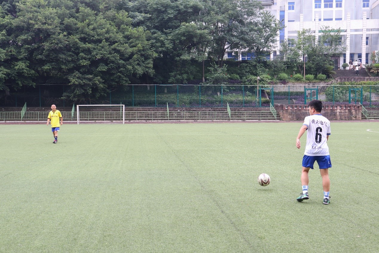 41分钟,李金锁禁区前带球晃过2名后卫推射破门;研二研三 2-2教工。