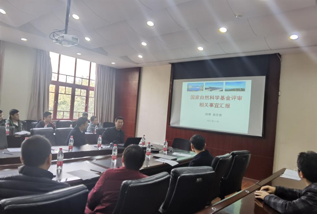最后,2021年国家自然科学基金会评专家胡博教授作了题为“国家自然科学基金评审相关事宜汇报”的报告。在报告中,从电气学科申请和资助情况、基金函评的特点和重点、基金会评相关事宜等三方面深入细致地向与会人员分享了自己的经验体会,大家进行了交流讨论。
