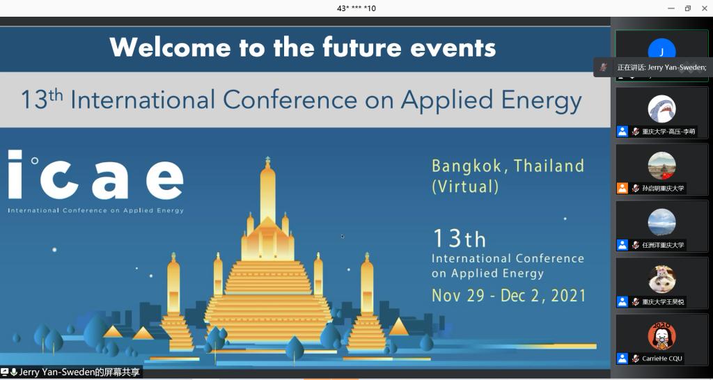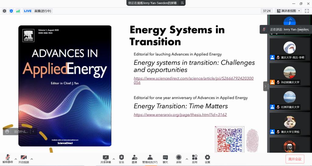 院士,Applied Energy主编严晋跃(Jerry Yan)教授受邀做客“成渝地区双城经济圈智慧能源大讲坛”,担任讲坛第二期的主讲嘉宾,以“Transitions of Future Energy Systems Towards Carbon Neutrality”为主题开讲。“成渝地区双城经济圈智慧能源大讲坛”是贯彻落实成渝双城经济圈国家发展战略,深化成渝两地教育资源合作共享的重要举措。讲坛由重庆大学、输配电装备及系统安全与新技术国家重点实验室和重庆大学溧阳智慧城市研究院主办,由成都地区的四川大学、电子科技大学、西南交通大学、成都理工大学、成都中医药大学、四川师范大学、西华大学、西南科技大学和重庆地区的西南大学、重庆邮电大学、重庆科技百家乐规则