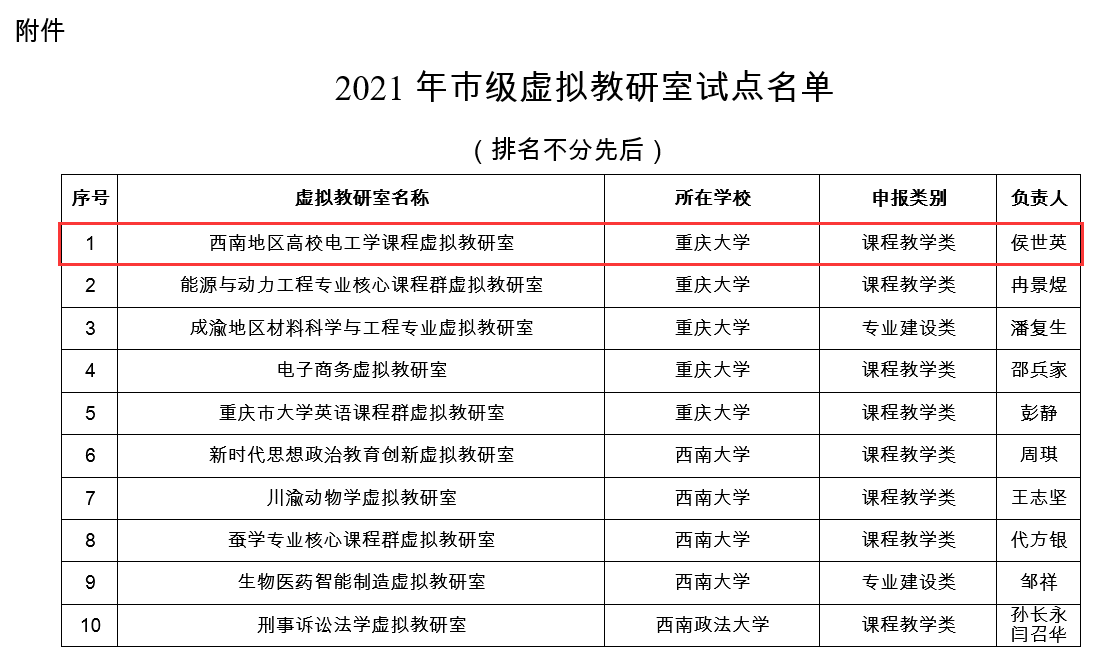 近日,重庆市教委公布了2021年市级虚拟教研室试点建设名单,我院侯世英教授牵头申请的“西南地区高校电工学课程虚拟教研室”项目获批立项。