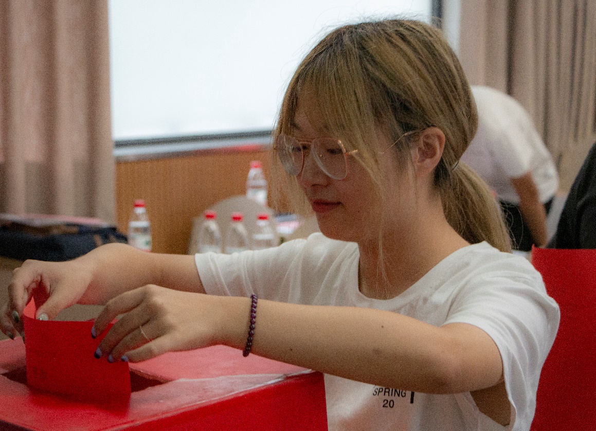 主持人宣读了此次选举大会的选举办法,介绍大会的总监票人、监票员和计票员名单。在大会总监票员、监票员的监督和总计票员、计票员的统计下,与会代表以无记名投票的方式,选举产生了仇玉亭等13名同学组成的百家乐规则