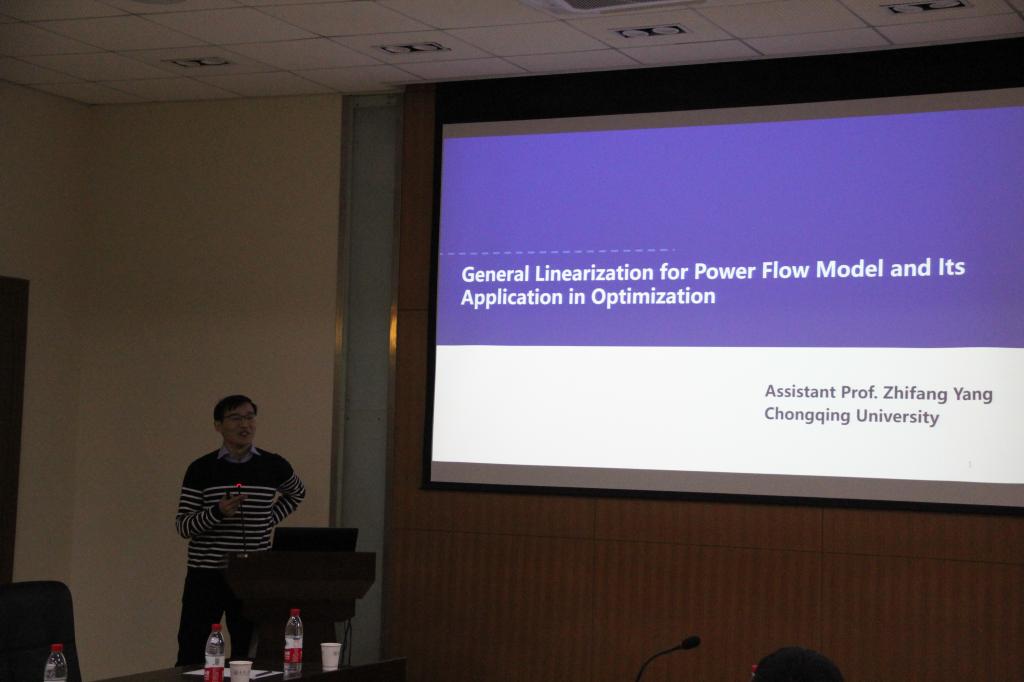 接着,前英国丹尼克斯半导体有限公司研发工程师蒋华平博士、重庆大学“百人计划”杨知方博士受邀做大会主题报告。蒋华平就碳化硅功率半导体发展现状与趋势向大家做了汇报,他介绍了碳化硅材料的发展历程和基本现状,分析了碳化硅的性能及其应用以及未来的研究与应用方向;杨知方针对电力系统的非线性和非凸优化的效率问题,介绍了通用的潮流方程线性化方法及其在优化领域中的应用。