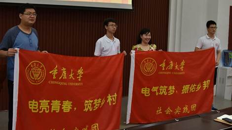 团委和重庆市电机工程学会主办,重庆市电机工程学会重庆大学学生分会承办。团队此次成功申请了两项全国大学生暑期社会实践专项行动——“丝路新世界·青春中国梦”和“青春传递正能量·禁毒防艾我先行”。活动主要内容包括:深入社会,进行小微企业投融资调研;贴近自然,进行生态环境保护与调研;走入群众,宣传禁毒防艾知识和进行免费小家电维修。